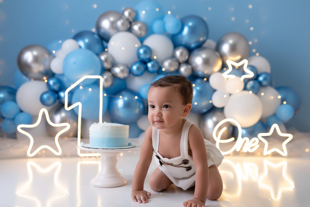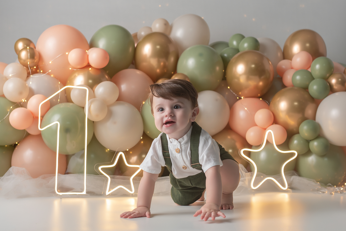 Essas sessões normalmente são para comemoração do primeiro aninho, todos os looks são disponibilizados pelo estúdio podendo também a família trazer alguma peça para personalizar ainda mais os cliques.